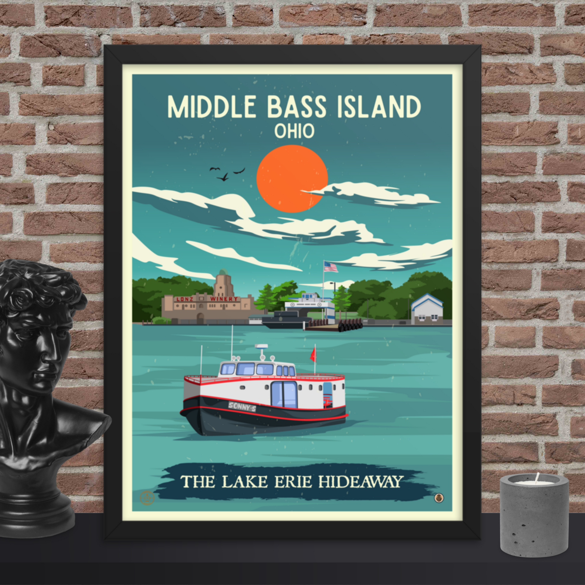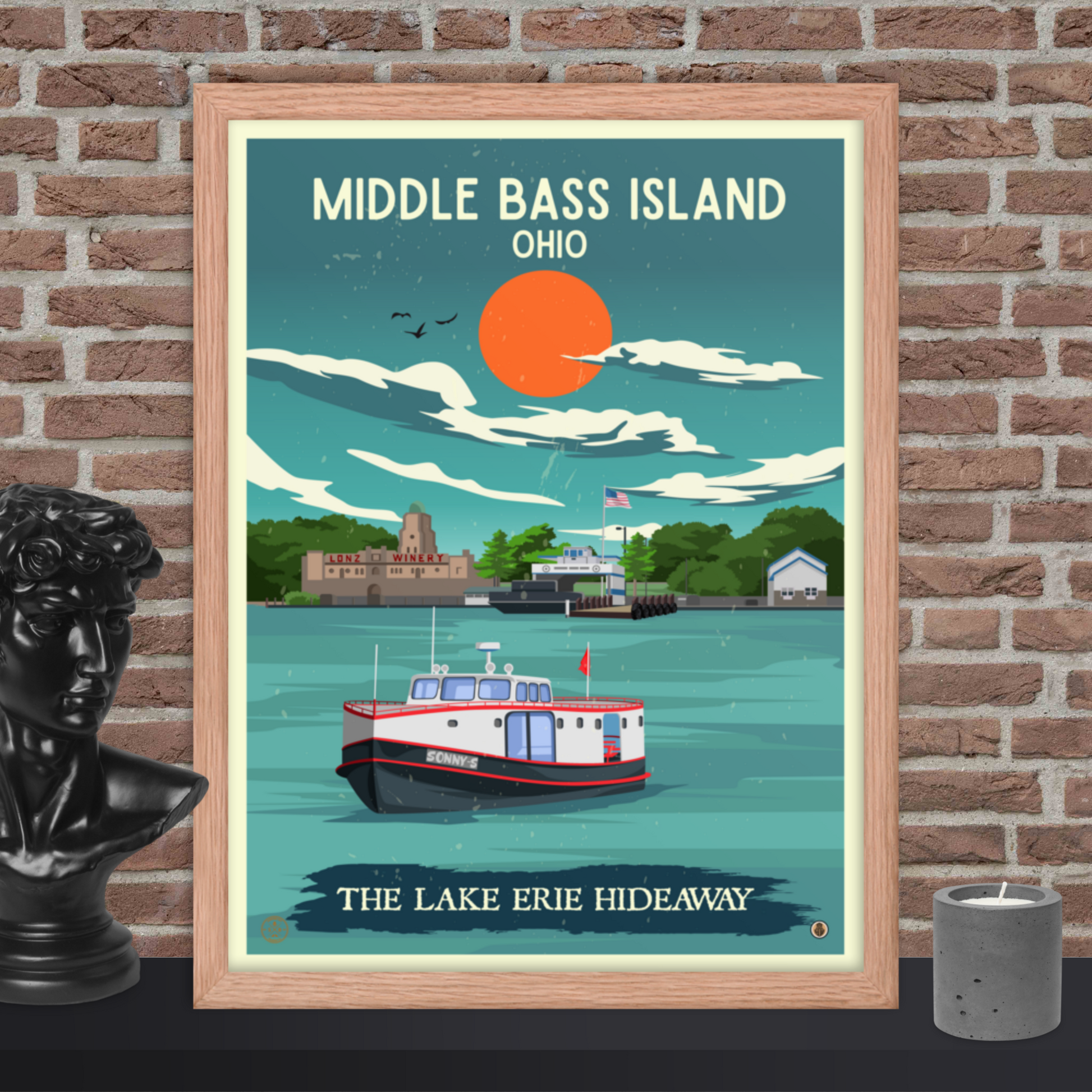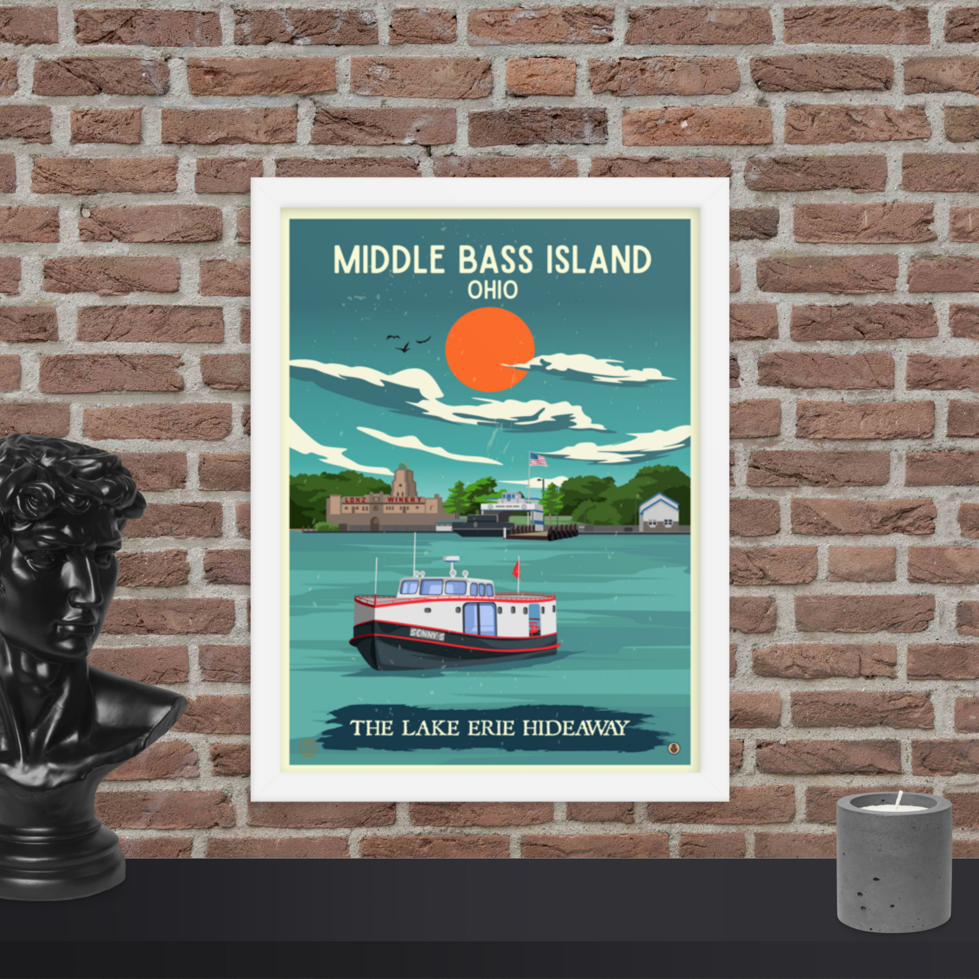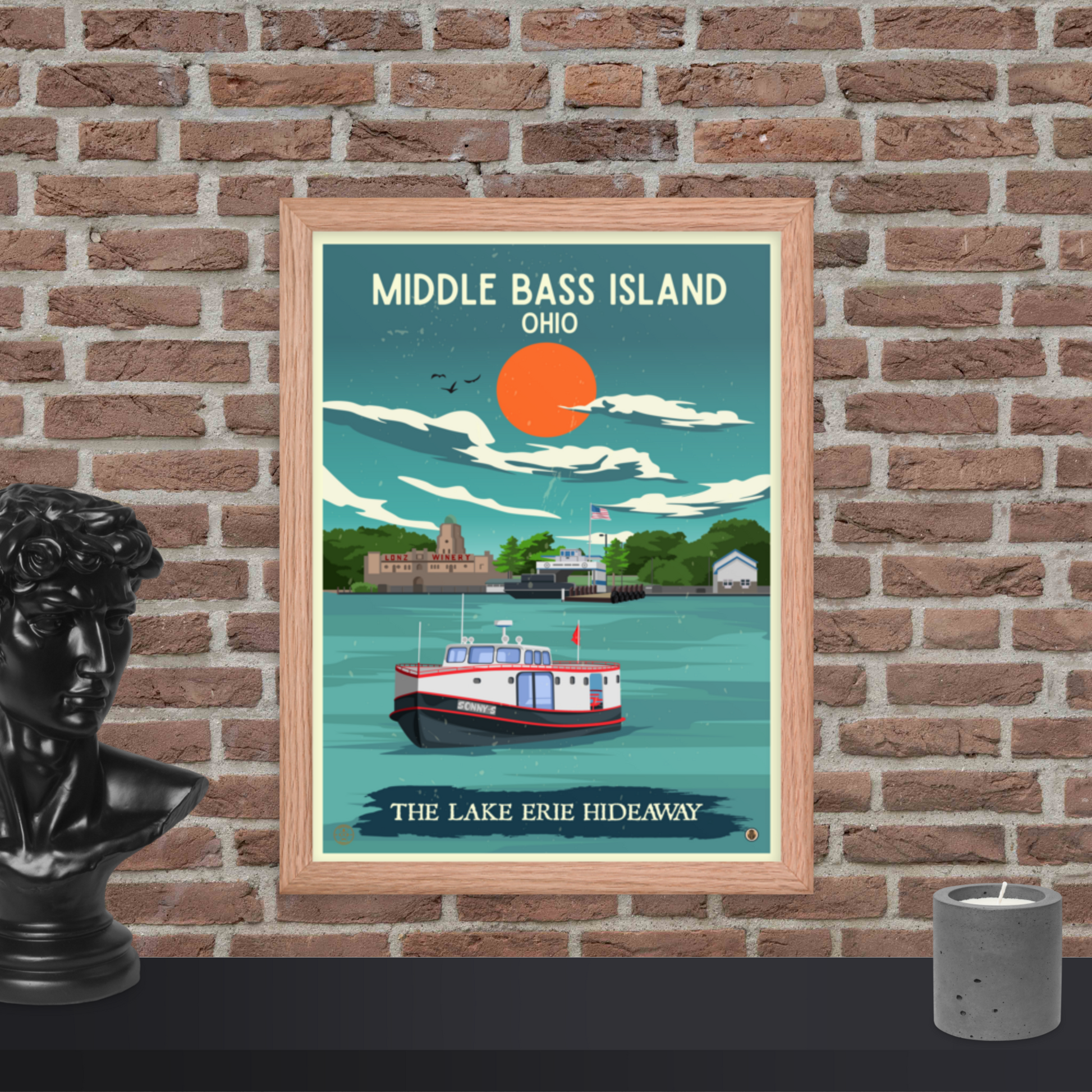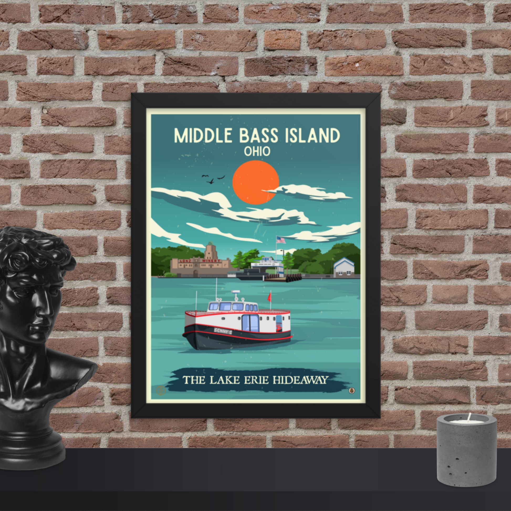 Middle Bass Island, Ohio - Retro Travel Poster / Wall Art (Framed)